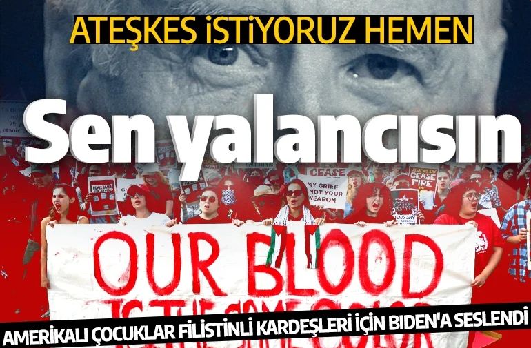 Beyaz Saray’ın önünde toplanıp her gün ölen Filistinli küçük kardeşleri için Biden’a seslenen Amerikalı çocuklar, ''Çocuklar için buradayız, çocuklar ölmesin. Sen bir yalancısın. Ateşkes talep ediyoruz” diyerek büyük alkış topladı.