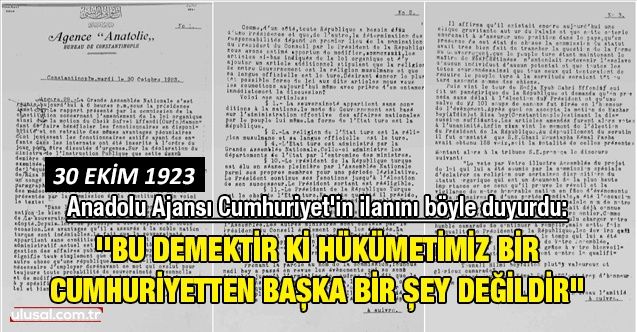Anadolu Ajansının 30 Ekim 1923'teki Fransızca bülteniyle Türkiye Cumhuriyeti'nin ilanı tüm dünyaya duyuruldu.