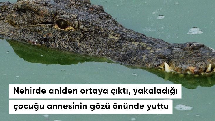 Aniden nehirde belirdi, yakaladığı çocuğu annesinin gözü önünde yuttu.