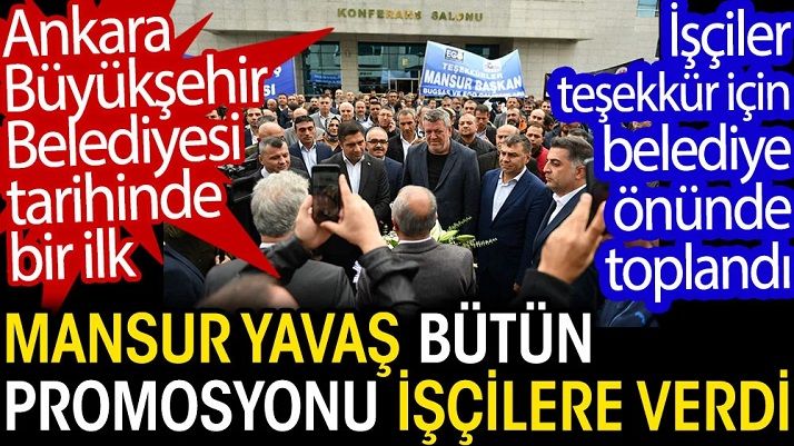 ABB çalışanlarına 27 bin TL promosyon ödemeleri yapıldı. Karar ve ödemenin ardından ABB çalışanları ve sendika temsilcileri ilk kez tüm promosyon tutarını işçi ve personele aktarma kararı alan Mansur Yavaş’a teşekkür etmek için bugün Büyükşehir Belediye Başkanlığı binası önünde toplandı.