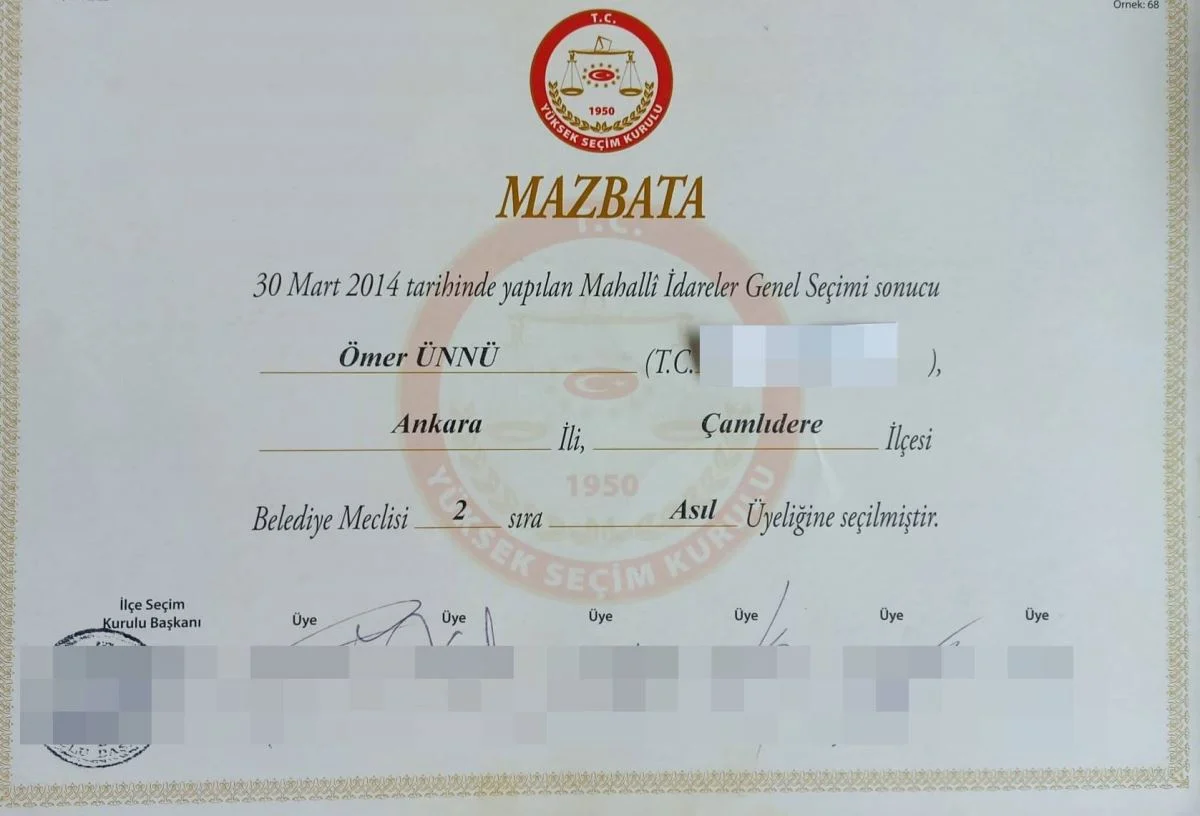 20142019 yılları arası AKP Ankara Çamlıdere Belediye Meclis üyesi, 20142015 yılları arası AKP İlçe Yönetim Kurulu üyesi, 20142016 yılları arası AKP Üst Kurul delegesi, 20142017 yılları arası Çamlıdere Grup Başkanvekili olan Ömer Ünnü AKP'den istifa etti.
