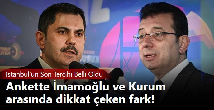 İstanbul yerel seçim anket sonuçlarına göre Ekrem İmamoğlu ile Murat Kurum arasındaki fark dikkat çekerken; ankette henüz adaylarının ismini açıklamayan DEM Parti ve İYİ Parti de yer aldı.