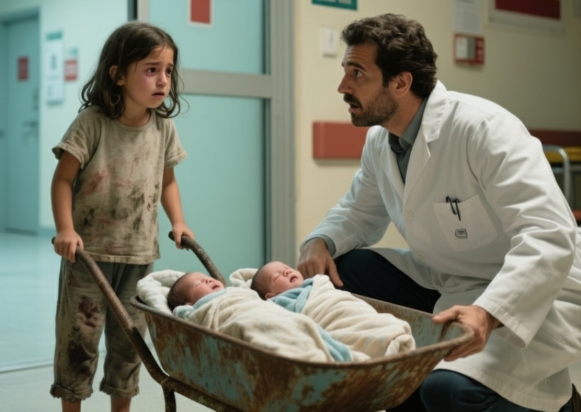 İçinde, ince bir battaniyeye sarılmış iki yeni doğan bebek vardı; yüzleri solgundu ama nefes alıyorlardı.