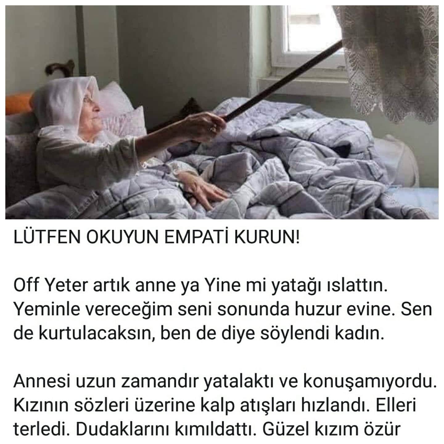 Off Yeter artık anne ya Yine mi yatağı ıslattın. Yeminle vereceğim seni sonunda huzur evine. Sen de kurtulacaksın, ben de diye söylendi kadın.