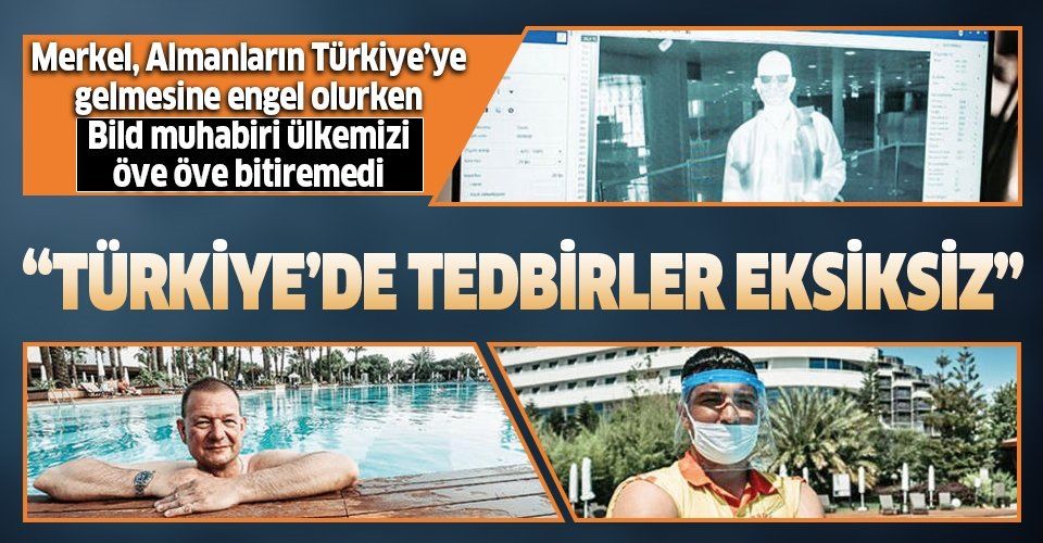 Türkiye'ye turist gibi özel bir muhabir yollayan gazete, Berlin'den Antalya'ya seyahati, oteldeki önlemleri ve dönüşü tüm detaylarıyla yazdı. Gazete, Antalya havalimanında alınan önlemlerin Berlin Tegel Havalimanı'ndan daha sıkı uygulandığının altını çizdi. Hürriyet'in aktardığı habere göre 'Cankurtaran bile maske takıyor' başlığı altında Michael Quandt imzasıyla yayınlanan haberde seyahatte alınan önlemler adım adım anlatıldı. Antalya Havaalanı'nda tüm gelen yolcuların ateşi ölçülüyor. Ateşi 37.8'den yüksek çıkanlara hemen havaalanında koronavirüs testi uygulanıyor. Uçaktan alana ve alandan da otele kadar otobüsle yapılan transferlerde her iki koltuktan birinin boş bırakılması zorunlu. Antalya'daki oteller kapasitelerinin yarısı kadar müşteri kabul ediyor. Şezlonglar arasında 23 metre ara bırakılmış. Cankurtaran Caner Budak (28) maskeyle zor olduğunu söylüyor. Ama 'hiç tatilci gelmemesinden iyidir' diye de ekliyor. Gazetenin muhabiri Berlin'e dönüşünden 30 saat önce Antalya'da hastanede koronavirüs testi yaptırdığını ve sonucun negatif çıkması üzerine uçtuğuna da haberde yazdı. Muhabir, "Böylece Berlin'de 14 gün karantinada tutulmaktan kurtuldum" dedi. Dönüş yolunda uçakta yolculara bilgilendirmek amacıyla broşürler dağıtıldığını da yazan muhabir, Berlin Tegel Havaalanı'ndaki uygulamayı ise şöyle kaleme aldı: "Havaalanında kontrol yok, uyarı yok. Berlin Tegel Havaalanı'nda uygulanan sosyal mesafe kuralı ve hijyenik önlemler de Antalya Havaalanı ile kıyaslandığında kötüydü." Almanya, Türkiye'yi 130 ülkeyle birlikte koronavirüs nedeniyle riskli ülkeler arasına almış, Türkiye'nin baskılarına rağmen seyahat uyarısını da 31 Ağustos'a kadar uzatmıştı.