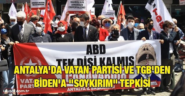 Muratpaşa ilçesinde Kapalıyol olarak bilinen Kazım Özalp Caddesi'nde, Vatan Partisi ve Türkiye Gençlik Birliği (TGB) ile 20'ye yakın sivil toplum kuruluşu üyesi, ellerinde Türk bayraklarıyla sloganlar atarak, ABD Başkanı Biden'a tepki gösterdi.