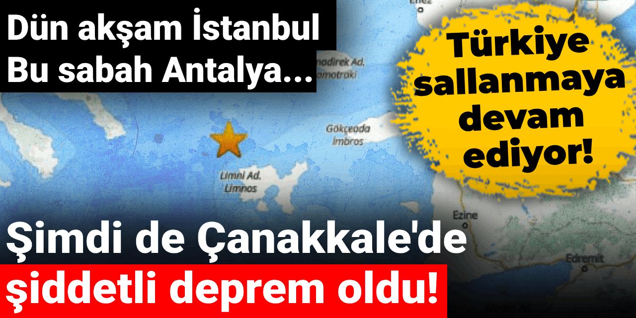 Sabah saatlerinde Antalya'da meydana gelen 4 büyüklüğündeki depremin ardından bu defa Çanakkale'de deprem oldu. AFAD'ın 4.6 olarak geçtiği depremi Kandilli Rasathanesi 4.8 olarak duyurup, depremin yerin 27 kilometre derinliğinde meydana geldiğini bildirdi.