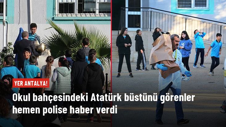 Antalya'nın Kepez ilçesinde bir kişi Alaeddin Keykubat Ortaokulu'nun bahçesine girerek Atatürk büstünü boynundan kırdı. Başı da yaralanan büst olay yerine bırakıldı. Sabah saatlerinde gelen polis ekipleri büstü görünce durumu polise bildirdi.