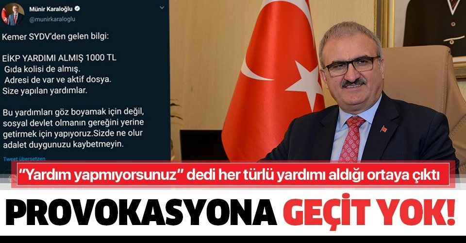 ''Ekonomik İstikrar Kalkanı'' paketi kapsamında söz konusu kişiye 1000 lira nakdi ve gıda kolisi yardımı yapıldığını açıklayan Karaloğlu, "Bu yardımları göz boyamak için değil, sosyal devlet olmanın gereğini yerine getirmek için yapıyoruz. Siz de ne olur adalet duygunuzu kaybetmeyin. Yardım aldınız mı? Verilen bilgilerde hata var mı? O zaman kimin gözünü boyuyoruz. Yazık değil mi? Binlerce insanın bu yardımları ulaştırmada emeği var. Sizin tekrar ihtiyacınız olabilir, bunu dile getirmenin yolu, yapılanı yok saymak olmamalı." ifadelerini kullandı.