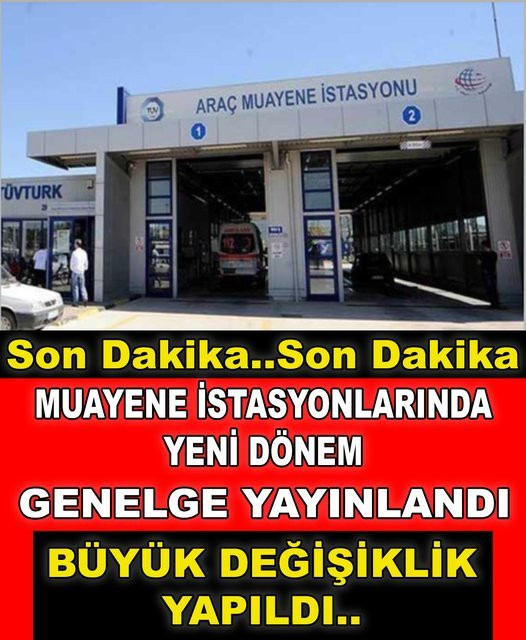 Araç muayenesinde yeni dönem!Araç muayenesinde yeni dönem! Bakanlık genelge yayımladı. Ulaştırma ve Altyapi Bakanı Adil Karaismailoğlu imzasıyla arac muayene istasyonlarında yeni dönem başladı.. İ’şte o genelge.Ayrıntılar diğer sayfada haberimiz detayındadır..HABERİN DEVAMINI OKUMAK İÇİN FOTOĞRAF ÜZERİNE T’IKLAYINIZ..