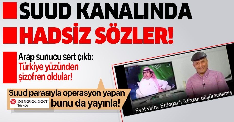 Suudi Arabistan merkezli yayın yapan bir televizyondaki programı yorumlayan Arap sunucu, konukların Türkiye ve Cumhurbaşkanı Erdoğan ile ilgili hadsiz sözlerine sert tepki gösterdi.