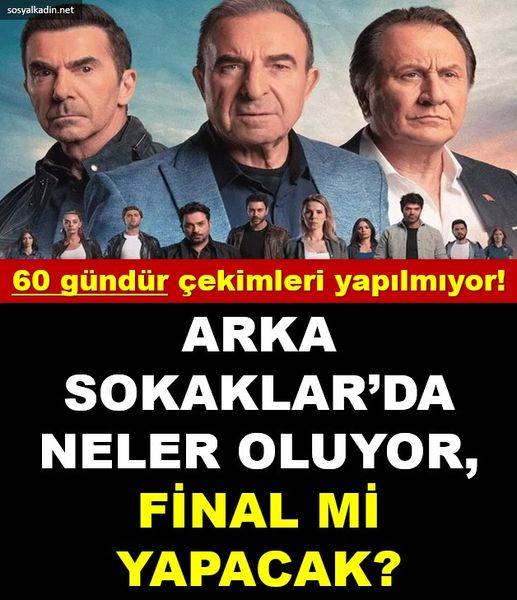 "FİNAL KARARI YOK AMA...": Birsen Altuntaş'ın haberine göre; 60 gündür çekimlerine ara verilen diziyle ilgili belirsizlik sürüyor. Şu anda Kanal D'nin almış olduğu bir final kararı yok. Yapım şirketi Erler Film bekleme süresi uzadığı için oyunculara gelecek yeni iş tekliflerini değerlendirmelerini önerdi. Dizinin yeniden sete çıkma kararının alınması durumunda da müsait olan oyuncularla yola devam edileceği belirtildi. Bekleme süresinin uzadığı Arka Sokaklar'ın yapım şirketi Erler Film tarafından dizisinin oyuncularına kendilerine gelecek yeni iş tekliflerini değerlendirmeleri önerildi.