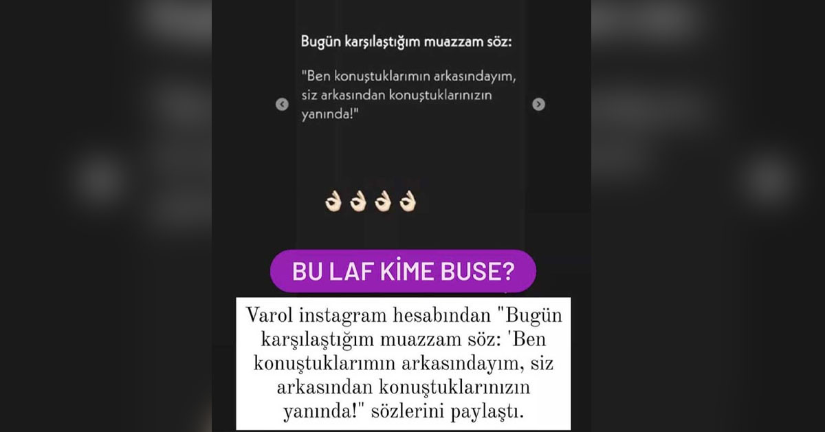 Varol instagram hesabından "Bugün karşılaştığım muazzam söz: 'Ben konuştuklarımın arkasındayım, siz arkasından konuştuklarınızın yanında!" sözlerini paylaştı.