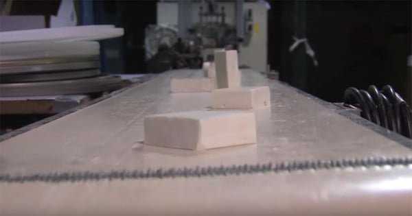 Geri dönüşüm tesisine gönderilen bu kullanılmış sabunlar, sterilize edildi ve geri dönüşüm için işlendi.