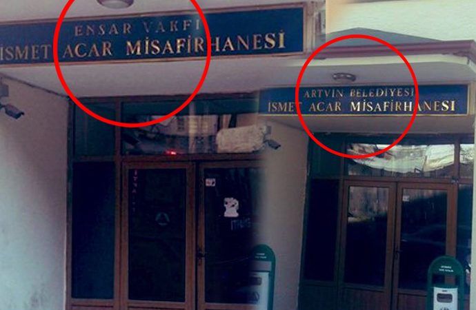 Binanın isminde bulunan “Ensar Vakfı” ifadesi kaldırılarak “Artvin Belediyesi” konuldu.