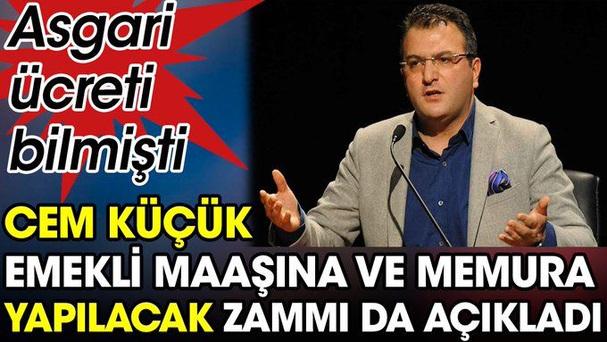 Cem Küçük, asgari ücretin yanı sıra memur ve emekli maaşlarına da zam geleceğini iddia etti. En düşük memur maaşının 31 bin lira, en düşük öğretmen maaşının 39 bin lira, polis maaşının ise 43 bin lira olacağını öne sürdü.