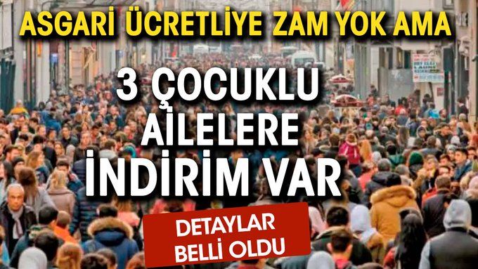 Asgari ücretliye zam yok ama 3 çocuklu ailelere indirim var