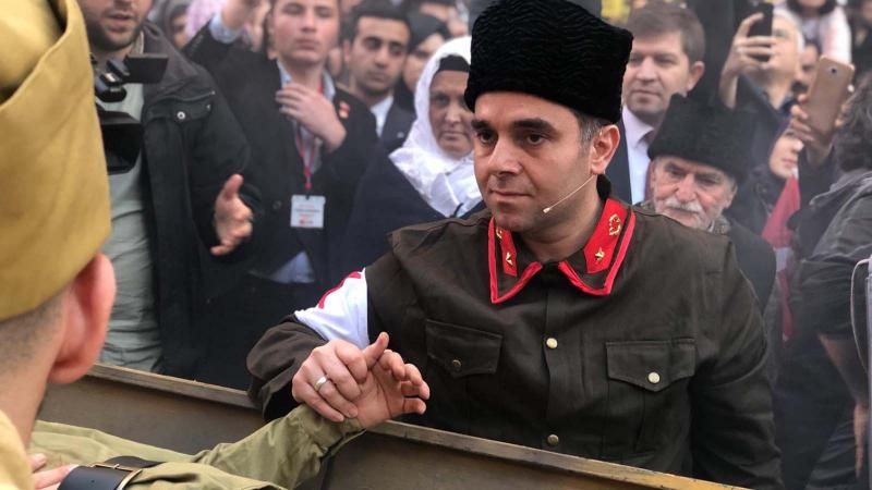 18 Mart Çanakkale Zaferi ve Şehitleri Anma Günü için Marmara Caddesi’nde sergilenen tiyatro oyununda AKP Avcılar Belediye Başkan Adayı İbrahim Ulusoy, asker kıyafeti giyip tabip rolünü oynadı.