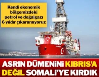 Son teknolojik sistemlere sahip 280 milyon dolar değerindeki 7. nesil Çağrı Bey sondaj gemisi, 180 kişilik mürettebatı ile Somali’ye uğurlandı. Çağrı Bey’e deniz korsanlarına karşı, donanmaya ait TCG Sancaktar, Gökova ve Bafra adlı 3 fırkateyn ile, Altan - Korkut ve Sancar adlı 3 destek gemisi de eşlik ediyor. 7 gemi ile Somali’de petrol ve doğalgaz aramaya giderken 5 yıldır Doğu Akdeniz ve Kıbrıs’a ise çıkamıyoruz.