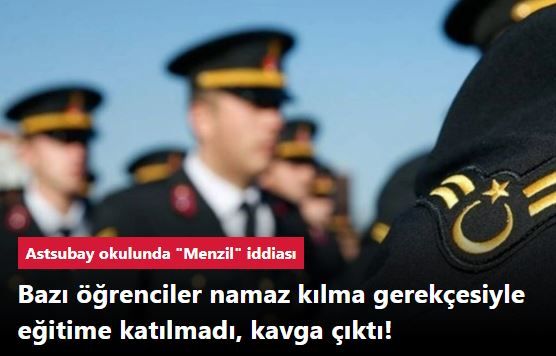Cumhuriyet’ten Çağdaş Bayraktar imzalı haberindeki iddiaya göre, Bursa’da bulunan Jandarma Astsubay Meslek Yüksekokulu’nda Menzil cemaatine yakınlığıyla bilinen bazı ikinci sınıf öğrencileri, namaz kılma gerekçesiyle bazı eğitimlere katılmak istemedi. Komutanlar da bu duruma göz yumdu. Bunun sürekli hale gelmesi üzerine de ibadet gerekçesiyle eğitimlere katılmayan dört öğrenci ile duruma tepki gösteren başka bir öğrenci arasında tartışma yaşandı. Tepki gösteren öğrencinin “Başlayacağım artık sizin torpilinize” çıkışı ardından sözlü tartışma fiziki tartışmaya dönüştü. 28 Aralık 2023 tarihinde meydana gelen tartışma, komutanların müdahalesi ile son buldu.