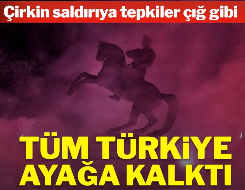 Atatürk’ün bindiği atın ayaklarına bağlanan halatın bir araç ile çekilerek yıkılmaya çalışılmasına başta siyaset, sanat, spor dünyasından olmak üzere toplumun her kesiminden binlerce tepki yağdı.