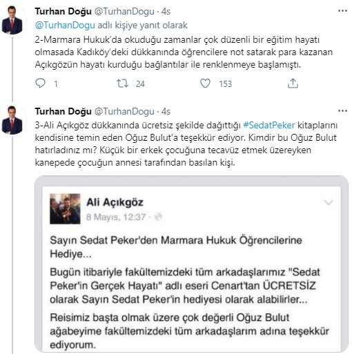 3Ali Açıkgöz dükkanında ücretsiz şekilde dağıttığı #SedatPeker kitaplarını kendisine temin eden Oğuz Bulut'a teşekkür ediyor. Kimdir bu Oğuz Bulut hatırladınız mı? Küçük bir erkek çocuğuna tecavüz etmek üzereyken kanepede çocuğun annesi tarafından basılan kişi.