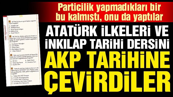 AKP'nin 20022018 yılları arasındaki dönemi İnkılap Tarihi ve Atatürkçülük ders kitabına Aralık 2020'de eklenmiş. Kitapta; AKP'nin kuruluşundan, 15 Temmuz'da Cumhurbaşkanı Erdoğan'ın bir televizyon kanalına telefonla bağlanması, Rahip Brunson krizi ve dünya liderleriyle yaptığı görüşmeler gibi çok sayıda olay fotoğraflarla anlatılmış. Afrin operasyonu, FETÖ'nün kumpas davaları Ergenekon ve Balyoz, Cumhurbaşkanlığı seçimleri, siyasi partilerin aldığı oy oranları gibi çok sayıda konu eklenmiş. Cumhurbaşkanı Tayyip Erdoğan'ın şiir nedeniyle cezaevine düştüğüne de vurgu yapılıyor.