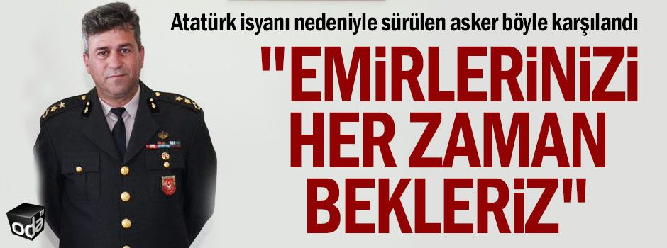 Ancak artık Türkiye Cumhuriyeti bir garabetler ülkesidir. 4 ay sonra komutanımız Hatay Askerlik Şubesi, başkanlığına sürgüne gönderilmiştir. Biz de Hatay’lı sayılırız. Böyle bir komutanımızın aramıza katılmasından tüm Hataylılar sadece gurur duyarız. Atatürk’ün adını anmayanlarla adının başına sarhoş alkolik gibi ancak sahiplilerine iade edeceğimiz sıfatları koymaya çalışanlar ise zavallılardır. 19 Mayıs 1919 da Samsun’a çıkan ve 9 Eylül 1922 de İzmir’e ulaşan ebedi Başkomutanımızın her yaptığının bütün Türk milleti arkasındadır. Ebediyen arkasında olacaktır. Atatürk sevgimizi azaltmaz. Bu eyleme karşı duranlar Atatürk’ün deyimi, ile Dahili ve harici bedhahlardır Dahili ve harici bedhahlar demek dahili ve harici hainler demektir. Emperyalist yalan makinelerinde üretilen yalanlar hiçbir zaman Atatürk’ümüze ve Atatürk sevgimize ulaşamaz ve etkileyemez. Hatay 40 asırlık Türk yurdudur. Hatay askerliği ve askerleri çok seven öznel bir kentimizdir. Hataylılar asker denilince Maraş’ı ve Gaziantep’i savuna kurtaran ve Hatay’ı Anavatana katan milli bir kuvveti anlamaktadır. Değerli komutanım. KIR ASIRLIK TÜRK YURDUNA HOŞ GELDNİZ. Tüm Türkiye ve Hataylılar size bağrını açacaklardır. Hoş geldiniz safalar getirdiniz emirlerinizi her zaman bekleriz.