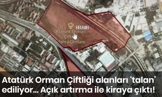 Bugün yayınlanan Resmi Gazetede, Atatürk Orman Çiftliği alanlarının Etimesgut Bahçekapı Mahallesi’nde bulunan 3309 ada 9 parsel ve 3301 ada 2 parselinde bulunan toplam 300 bin 492 metrekarelik arazileri açık arttırmayla 17 Eylül 2019 tarihinde kiralamaya çıkartıyor.