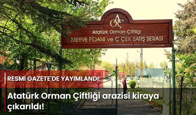 Resmi Gazete'de yayımlanan ilanda, kira sözleşmesi biten 1.412 metre karelik Atatürk Orman Çiftliği arazisinin açık ihale usulüyle 5 yıllığına yeniden kiraya verileceği duyuruldu. Aylık 7.500.00 liraya kiraya verilen alan 28 Ocak 2021'de ihaleye açılacak.