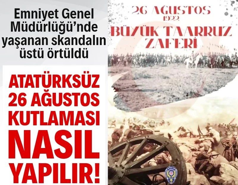 Emniyet Genel Müdürlüğü (EGM), geçtiğimiz salı günü Büyük Taarruz’un 103. yıldönümü nedeni ile sosyal medya hesabından bir mesaj yayımladı. Mesajda, Anıtkabir’de bulunan Büyük Taarruz panoraması kullanıldı. Ancak tablodan Ulu Önder Atatürk’ün özellikle silindiği görüldü. Sabah saatlerinde yapılan paylaşıma tepkiler çığ gibi gelmesine rağmen akşam saatlerine kadar bir türlü silinmedi. Silindikten sonra ise bir açıklama yapılmadı, özür dilenmedi. Tepkilere yol açan skandalı NEFES manşetlere taşıdı...
