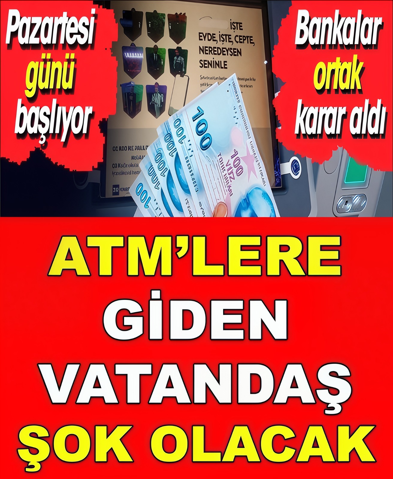 Bankaların aldığı karar doğrultusunda Pazartesi günü Türkiye’deki ATM’lerde önemli bir değişiklik yaşanacak. ATM’lere giden sok olacak. Pazartesi günü başlıyor. Bankalar ortak karar aldı Ayrıntılar İçeriğin Devamındadır. devamı sonraki sayfada… Üs-teki Resimden Diğer Sayfaya Geçiş Yaparak Haberin Devamını Okuyabilirsiniz.