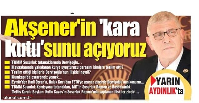 Geçmişte Vatan Partisi Genel Başkanı Doğu Perinçek'e yönelik suikast girişiminde bulunan İyi Parti Grup Başkanvekili Müsavat Dervişoğlu, İyi Parti ve İyi Parti Genel Başkanı Meral Akşener'in 'kara kutu'su özel bir haberle açılacak.