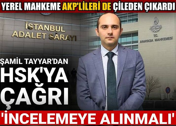 Yerel mahkemenin, Türkiye'deki en yüksek yargı makamı olan AYM'yi yok saymasına AKP'li Şamil Tayyar sert tepki verdi. Tayyar, İstanbul 13. Ağır Ceza Mahkemesi'nin kararının "açıkça hukuk dışı" olduğunu belirterek, bu yerel mahkeme hakkında inceleme başlatılması için de Hakimler ve Savcılar Kurulu'na (HSK) çağrıda bulundu.