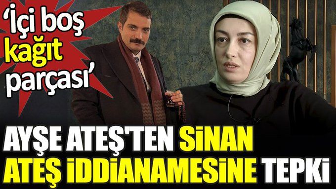 Sinan Ateş'in eşi Ayşe Ateş, sosyal medya hesabı üzerinden yaptığı açıklamayla iddianameye tepki gösterdi. İddianameyi 'içi boş kağıt parçası' olarak nitelendirdiği iddianamenin kabul edildiğini büyük bir üzüntü içerisinde öğrendiğini belirten Ayşe Ateş, çocuklarının kendisine 'Babamızı polisler mi öldürdü' diye sorduğunu, kendisinin ise onlara her defasında 'Yok anneciğim, devletimizin polisleri bizi koruyor. Arkamızdan gizlice takip ediyorlar' diyerek devlete olan güvenlerini kaybetmelerine mani olmaya çalıştığını ifade etti.