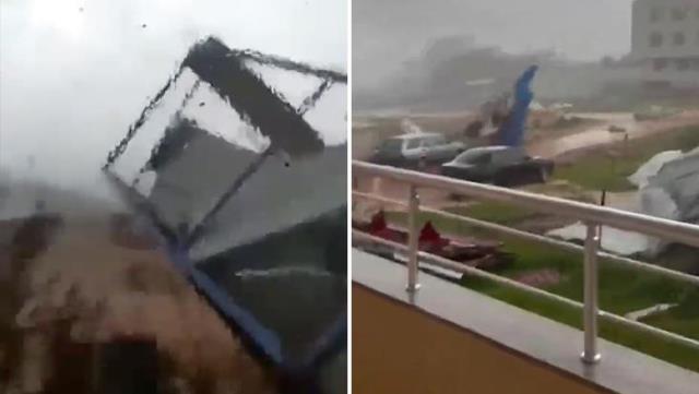 Kahramanmaraş'ın Pazarcık ilçesinde meydana gelen hortum büyük paniğe neden oldu. 1 kişinin öldüğü 8'i ağır 40 kişinin yaralandığı hortum anının görüntüleri ortaya çıktı.