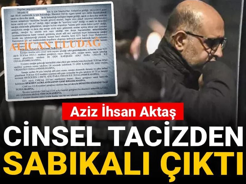 İstanbul Büyükşehir Belediyesi'ne (İBB) yönelik soruşturmada 'itirafçı' olan ve ifadeleriyle 6 CHP'li belediye başkanının tutuklanmasına neden olduğu belirtilen Aziz İhsan Aktaş'ın, "cinsel taciz" suçundan adli para cezasına çarptırıldığına dair mahkeme kararı ortaya çıktı. Ankara'da bir iş kadınına yönelik eylemi nedeniyle 2 Şubat 2023'te verilen cezanın, Aktaş'ın adli sicil kaydına işlendiği öğrenildi.