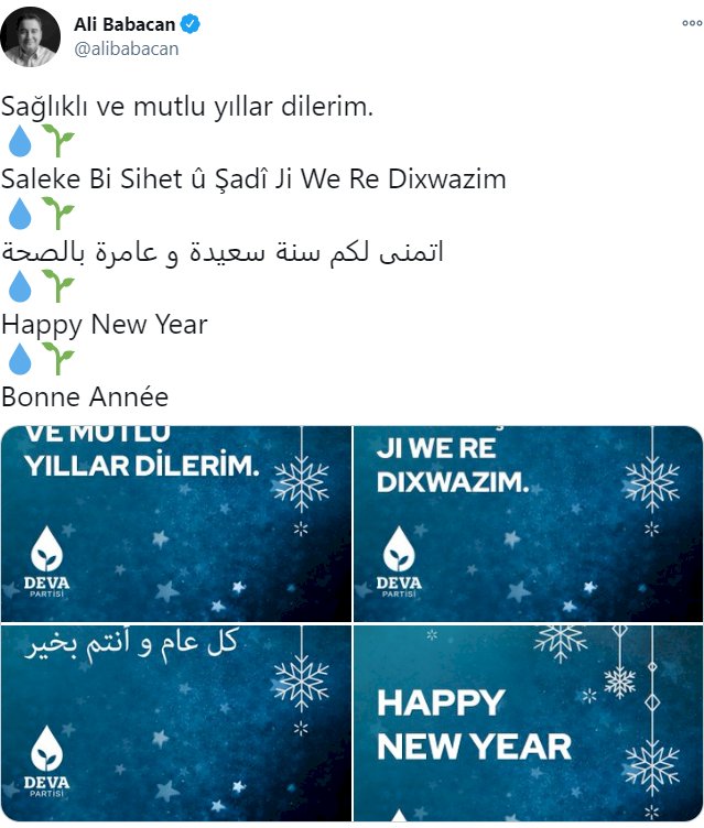 Deva Partisi Genel Başkanı Ali Babacan'ın sosyal medya hesabı Twitter’dan yeni yıla ilişkin yaptığı paylaşım dikkat çekti.
