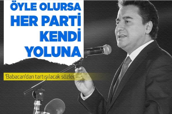 DEVA Partisi Genel Başkanı Ali Babacan, "Seçimlerden önce hiçbir partinin seçimde yüzde kaç alacağını önden hesap ederek bir çalışma olmaz, öyle bir çalışmayla seçime gidilmez. Eğer öyle bir çalışmayla seçime gidilse o zaman her parti kendi yoluna. Bu partilerin hepsi eşitler olarak Masa'ya oturmuştur. Buna karşı olanlar varsa hemen söylesin, gereğini yapalım" dedi.