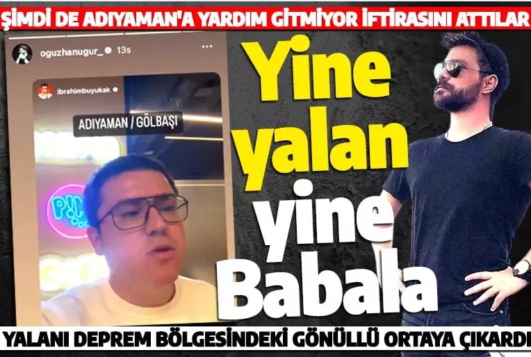 Devletin yardım ulaştırmadığı yalanını ortaya atan oyuncu İbrahim Büyükak, 'Babala ofisten' yaptığı paylaşımda, "Arkadaşlar Adıyaman'ın Gölbaşı ilçesinde 3 belde, 55 mecra, 28 köy sadece İlçe Jandarma Karakolu ilgileniyor. Burası depremden büyük zarar gördü. Lütfen burayıda unutmayalım. Yardımlarımızı esirgemeyelim." dedi.