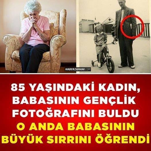 85 Yaşındaki Kadın, Babasının Bir Fotoğrafını Buldu - O Anda Babasının Büyük Sırrını Öğrendi Bu kadın, tavan arasını temizlerken babasının eski bir fotoğrafına rastladı. Sevgili babasının bu portresini daha önce hiç görmemiş olması onu çok şaşırtmıştı. Fotoğrafı görünce biraz duygulandı. Ta ki yakından bakıp korkunç bir ayrıntıyı fark edene kadar... Her şeyden habersiz kızı, bir anda tatlı babasının bambaşka bir yüzünü gördü... devamı için görsellere tıklayınız