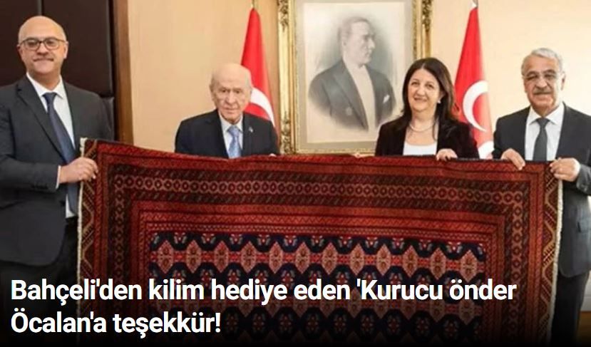 Milliyetçi Hareket Partisi (MHP) Genel Başkanı Devlet Bahçeli, konuk olduğu televizyon programında Abdullah Öcalan'ın kendisine dokutup hediye gönderdiği kilime, ' 27 Şubat 2025 Barış ve Demokrasi Kilimi' adını verdiğini söyledi.