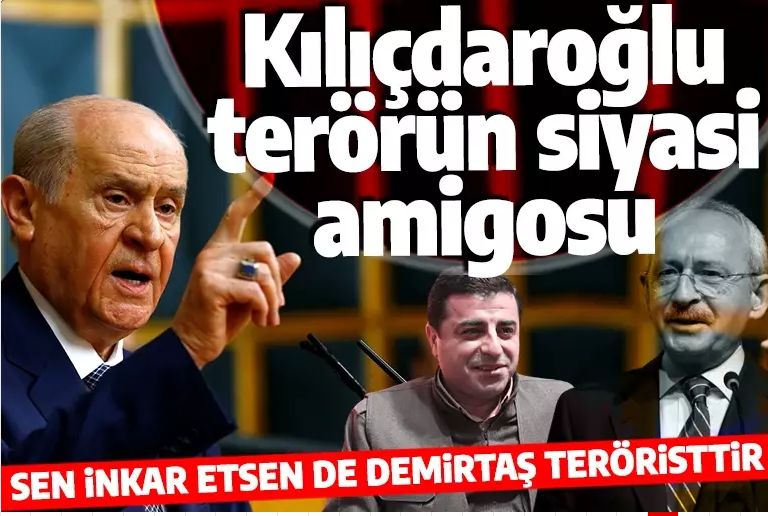 ''Kılıçdaroğlu'nun terörist Demirtaş hayranlığı korkarım kendisini bu gidişle Kandil'e kadar taşıyacak, terör örgütünün devşirdiği bir siyasetçi olarak adı tarihe kara bir leke olarak geçecektir.'' diyen Bahçeli, ''Terörle mücadelenin iç siyaset malzemesi olarak kullanıldığını iddia etmek PKK'nın değirmenine su taşıyan bayağı bir çarpıklıktır. Kılıçdaroğlu'nun Van'da yaptığı konuşma skandaldır ve teröristlere uzatılan zeytin dalıdır. Sen inkar etsen de Selahattin Demirtaş teröristtir, haindir, Türkiye düşmanıdır. Osman Kavala Sorosçudur. Böyle bir taşeronu nasıl serbest bırakacaksın? Bu vaadini nasıl gerçekleştireceksin? Kılıçdaroğlu hani Kandil'i yakıp yıkacağını söylüyordun. Biz hangi Kılıçdaroğlu'na inanalım. Tanınmaz haldesin. Senden Cumhurbaşkanı olmaz Kılıçdaroğlu. Bugünkü CHP ile Atatürk'ün partisi arasında en küçük bir benzerlik kalmamıştır. CHP ile HDP, PKK'nın borusudur.'' şeklinde konuştu.