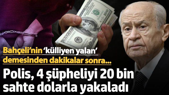 MHP lideri Devlet Bahçeli’nin sahte dolar için "Türkiye'ye yönelik bir operasyon, tamamen yalan ve saptırma" sözlerinden dakikalar sonra, Ankara Cumhuriyet Başsavcılığı, sahte 50 ve 100 ABD doları banknotlarını piyasaya sürdüğü belirlenen 5 şüpheli hakkında yakalama kararı çıkarıldığını, 4'ünün gözaltına alındığını duyurdu.