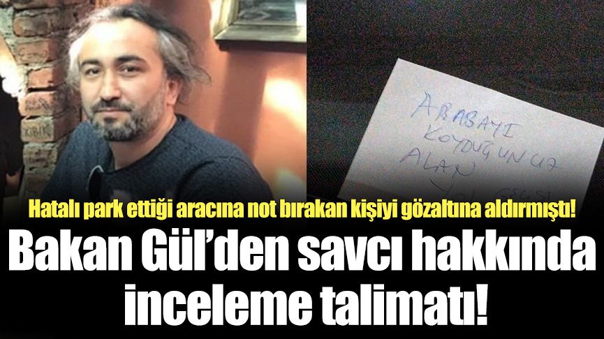 Tepki çeken olayla ilgili Adalet Bakanlığı’ndan açıklama geldi. Bakan Abdülhamit Gül’ün hatalı park eden savcının aracına not bırakan kişinin gözaltına alınmasıyla ilgili HSK’ya inceleme izni verdiği belirtildi.
