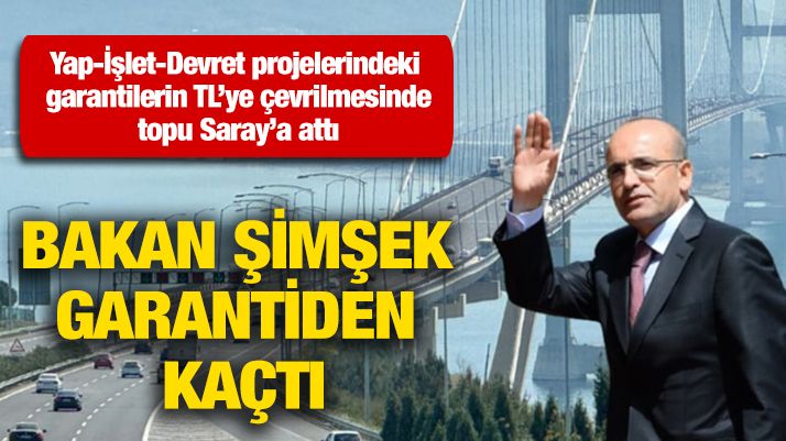Hazine ve Maliye Bakanı Mehmet Şimşek, milyar dolarlık zarara neden olan köprü, otoyol, tünel, havaalanı gibi garantili yapişletdevret (YİP) projeleri için sorumluluk almadı. Mehmet Şimşek, CHP Erzincan Milletvekili Mustafa Sarıgül’ün döviz garantili projelerin garantilerinin TL’ye çevrilmesine ilişkin soru önergesini cevaplandırdı. Kamudaki araçlar için “çerez parası’’ diyen, deprem vergilerini de otoyollara harcadıklarını açıklayan, ardından tasarruf genelgesi yayınlayan Mehmet Şimşek, milyar dolarlık zarara neden olan köprü, otoyol, tünel, havaalanı gibi garantili YİD projeleri için sorumluğu Cumhurbaşkanlığı’na bıraktı.