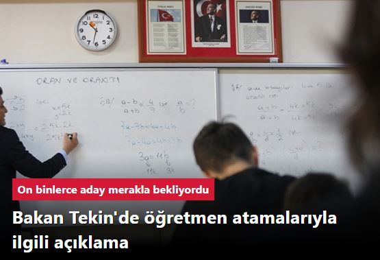 Ayrıca, atama sayısına ilişkin nihai kararın Cumhurbaşkanlığı Kabinesi toplandıktan sonra açıklanacağını belirten Bakan Tekin, 'Cumhurbaşkanlığı Kabinesi toplandıktan sonra, Sayın Cumhurbaşkanı'mızın nihai kanaatini aldıktan sonra da açıklamasını yapacağız.' dedi.