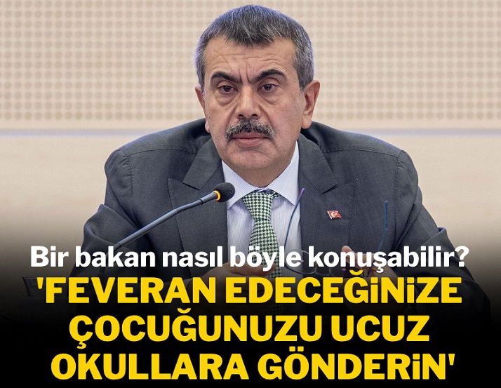 Tekin, özel okul fiyatlarının yüksek olmadığını belirterek "Bak sevgili kardeşim, sen çocuğunu özel okula göndermek zorunda değilsin. Gönderiyorsan, özel okullarımızın %90'ı 600 bin TL'nin altında. Yani kamuoyunda makul kabul edilen rakamın altında. Onlardan seçebilirsin." ifadelerini kullandı.