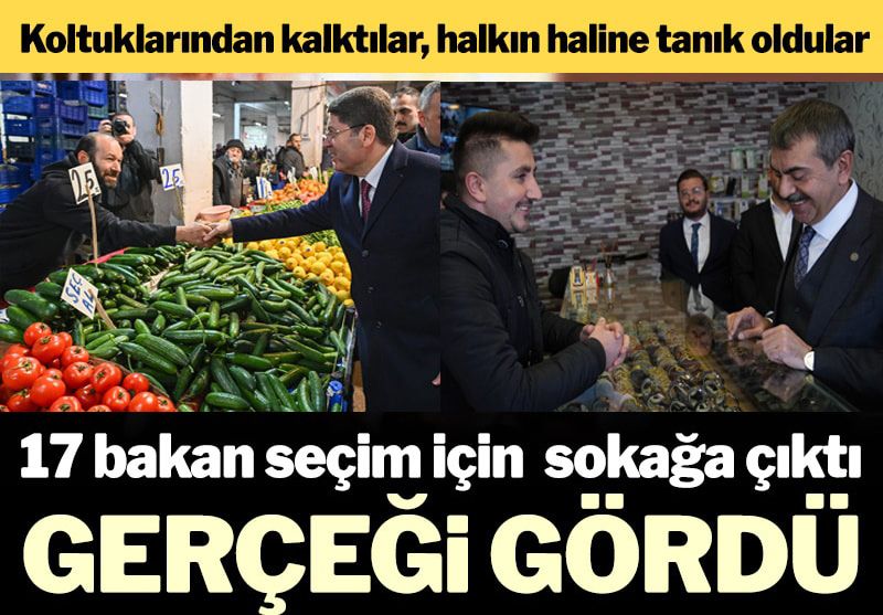 Adalet Bakanı Yılmaz Tunç, Zonguldak’ta pazar gezdi. Tunç’un ziyaret ettiği pazarda muz 35 TL, salatalık 25 TL, pırasa ise 20 TL’den satılıyor. Aile ve Sosyal Hizmetler Bakanı Mahinur Göktaş’ın Afyon’da bir telefon mağazasına girdi, en düşük internet paketlinin 150 lira olduğunu gördü. Çalışma Bakanı Vedat Işıkhan’ın gittiği dükkanda da kaşarlı dürümün 85 lira olduğu görüldü.
