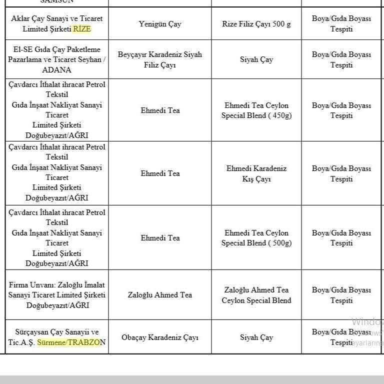 Tarım ve Orman Bakanlığı, Türkiye genelinde taklit veya tağşiş yapıldığı tespit edilen 371 firmaya ait 559 parti ürünü ifşa etti. İnsan sağlığını tehlikeye düşürebilecek şekilde gıdalarla oynayan firmalar Tarım ve Orman Bakanlığı’nın son yayınladığı listede kamuoyunun bilgisine sunuldu. Bu kapsamda, laboratuvar sonucu ile kişilerin hayatını ve sağlığını tehlikeye düşürecek şekilde bozulmuş ve değiştirilmiş ürünlere ait bilgiler ile taklit/tağşiş yapılmış ürünlere ait bilgiler paylaşıldı.